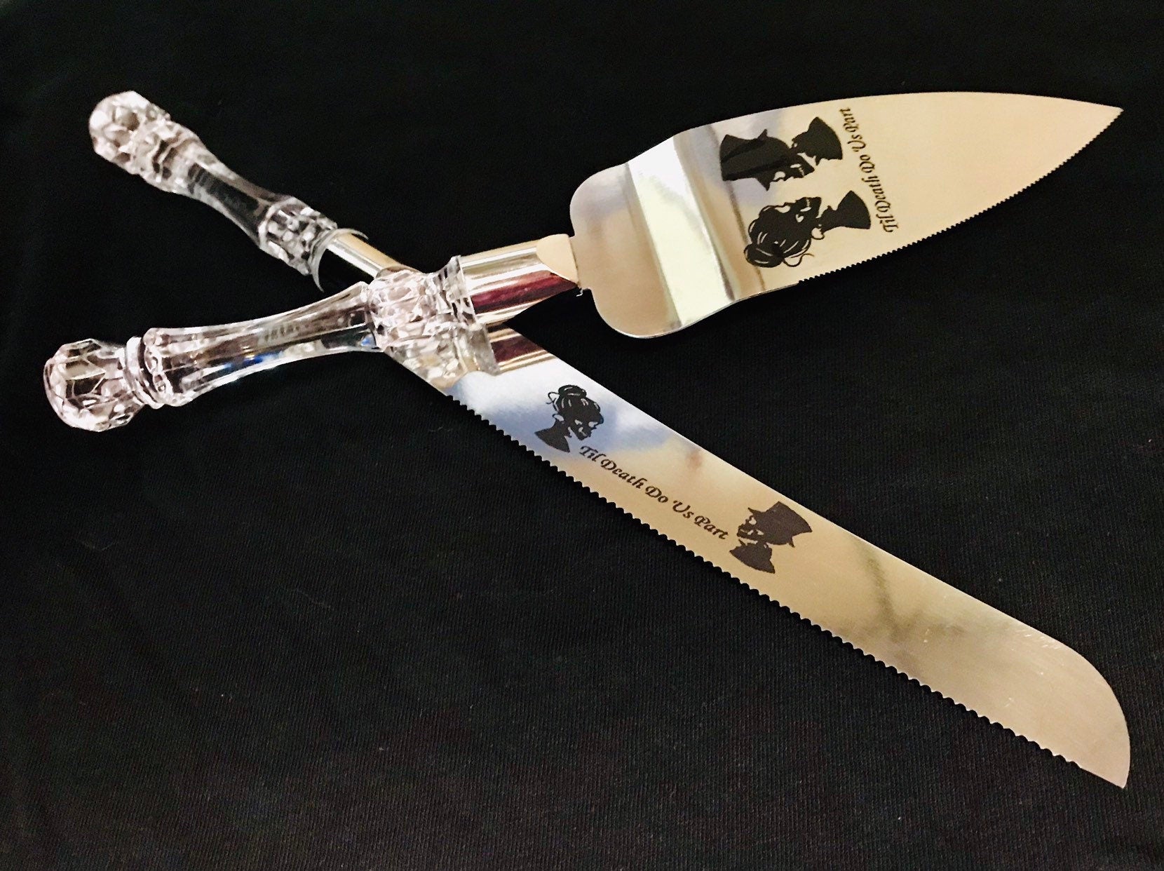 Personalized, Til Death do us part, Skeletons Cake Knife and Server Set
