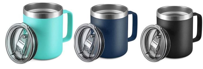No sweat design with seamless construction so there is no leak point. Used for hot and cold beverages. Powder coated and lead free