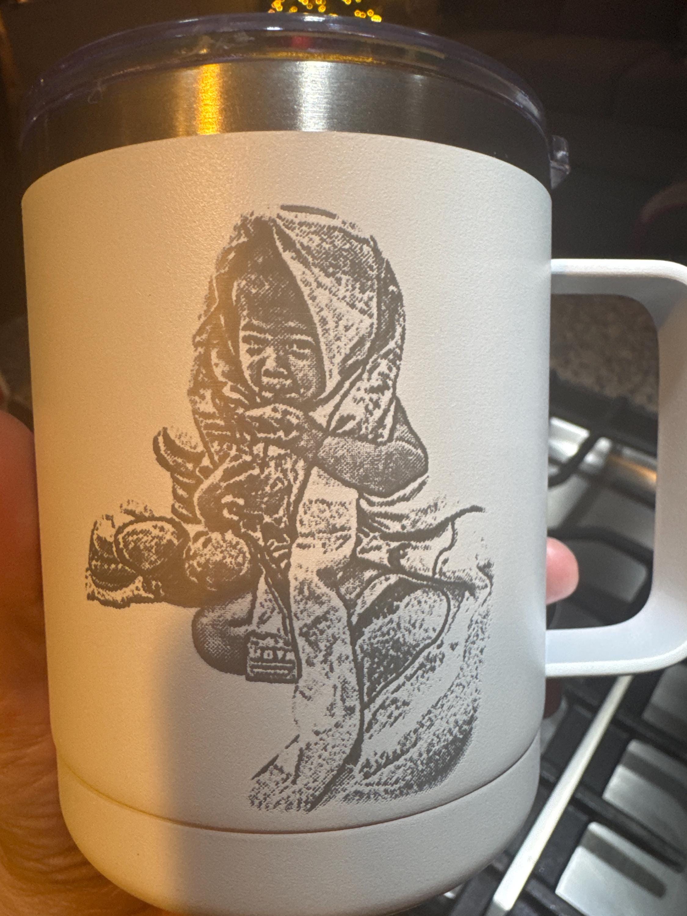 This 12 oz. photo engraved coffee tumbler makes a perfect gift for Bachelor/Bachelorette Party. Wedding. Bridesmaid. Corporate Events. Birthdays. Party Favors