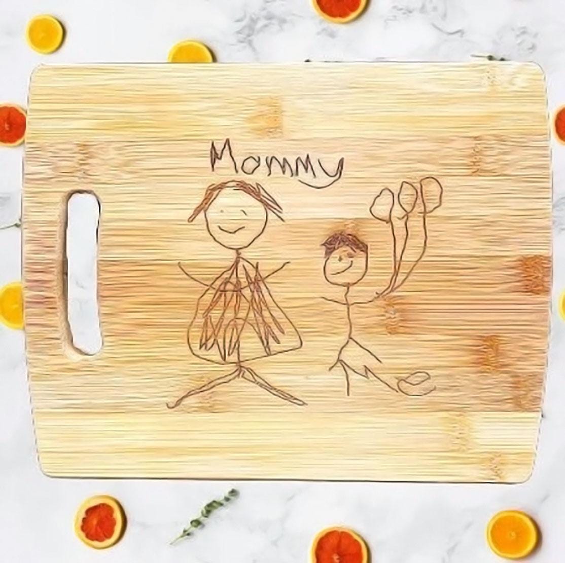 This engraved child's art cutting board is made from all natural bamboo. Perfect for all food preparation needs and makes a wonderful gift.