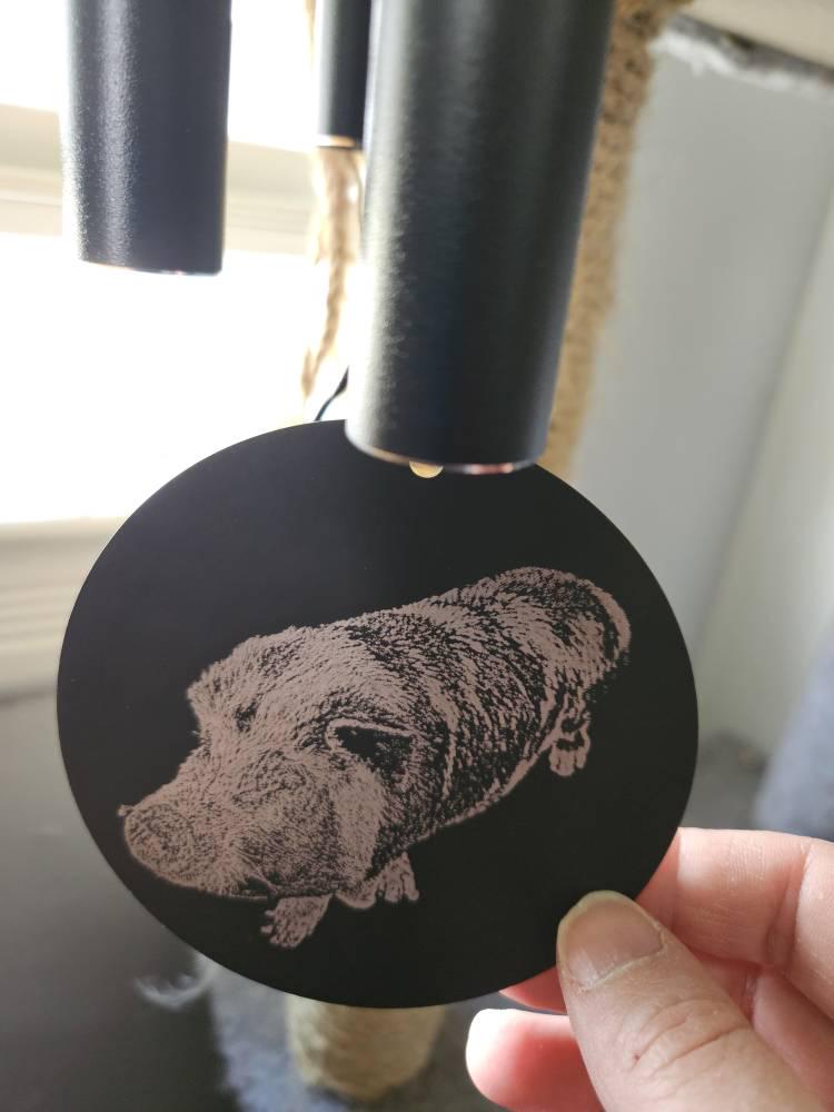 These wind chimes turned out so good. A great gift for my husband after we lost her dog. I was shocked at how fast the item was made and shipped. Highly recommend.