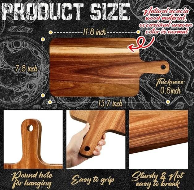 The multifunctional wooden paddle board is made of acacia, well crafted, polished, smooth edges, not easy to corrode, reliable and strong