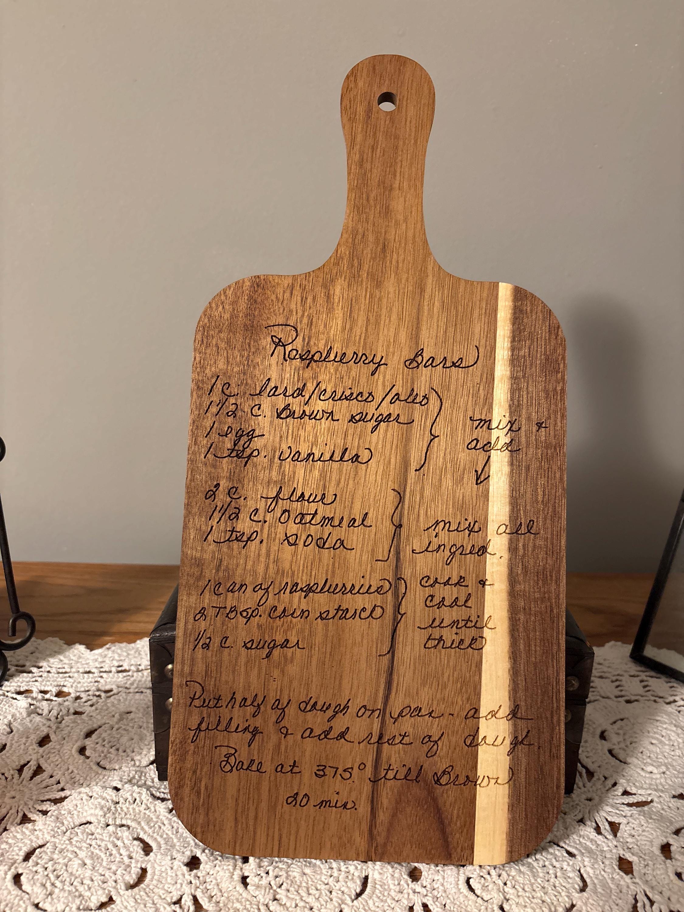 The engraved cutting board is absolutely beautiful! Perfect size and the engraving is spot on. Love it!