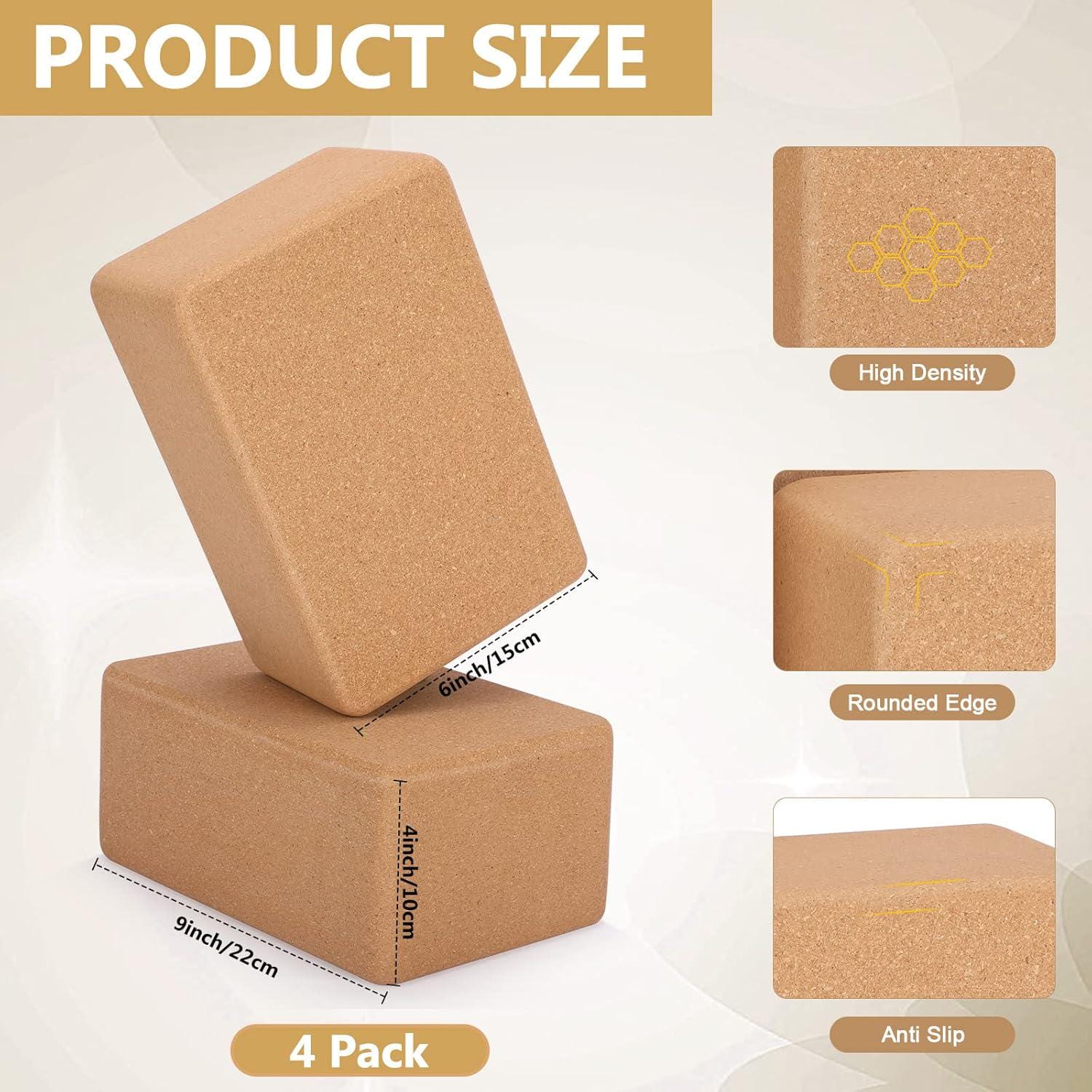 - Reliable and Safe Yoga Props Cork Blocks: made from quality cork material, our yoga fitness blocks are hard and safe, ensuring they won't deform or break under heavy weights; Using them under your hands, feet, or seat to modify and align your poses to suit your practice level and flexibility. Cork yoga blocks do not contain latex.
