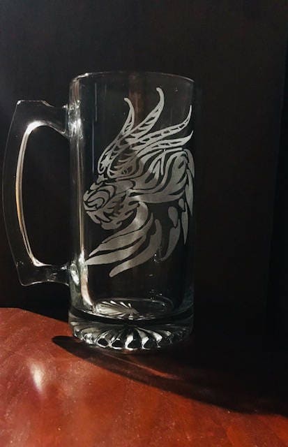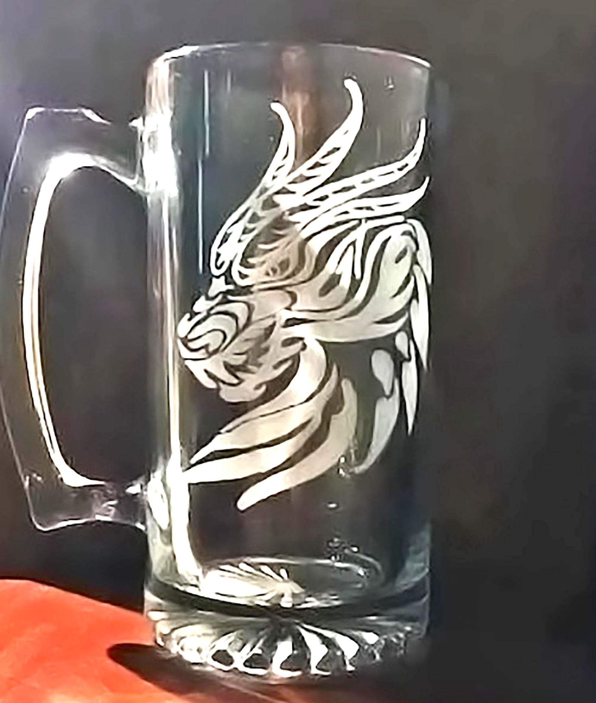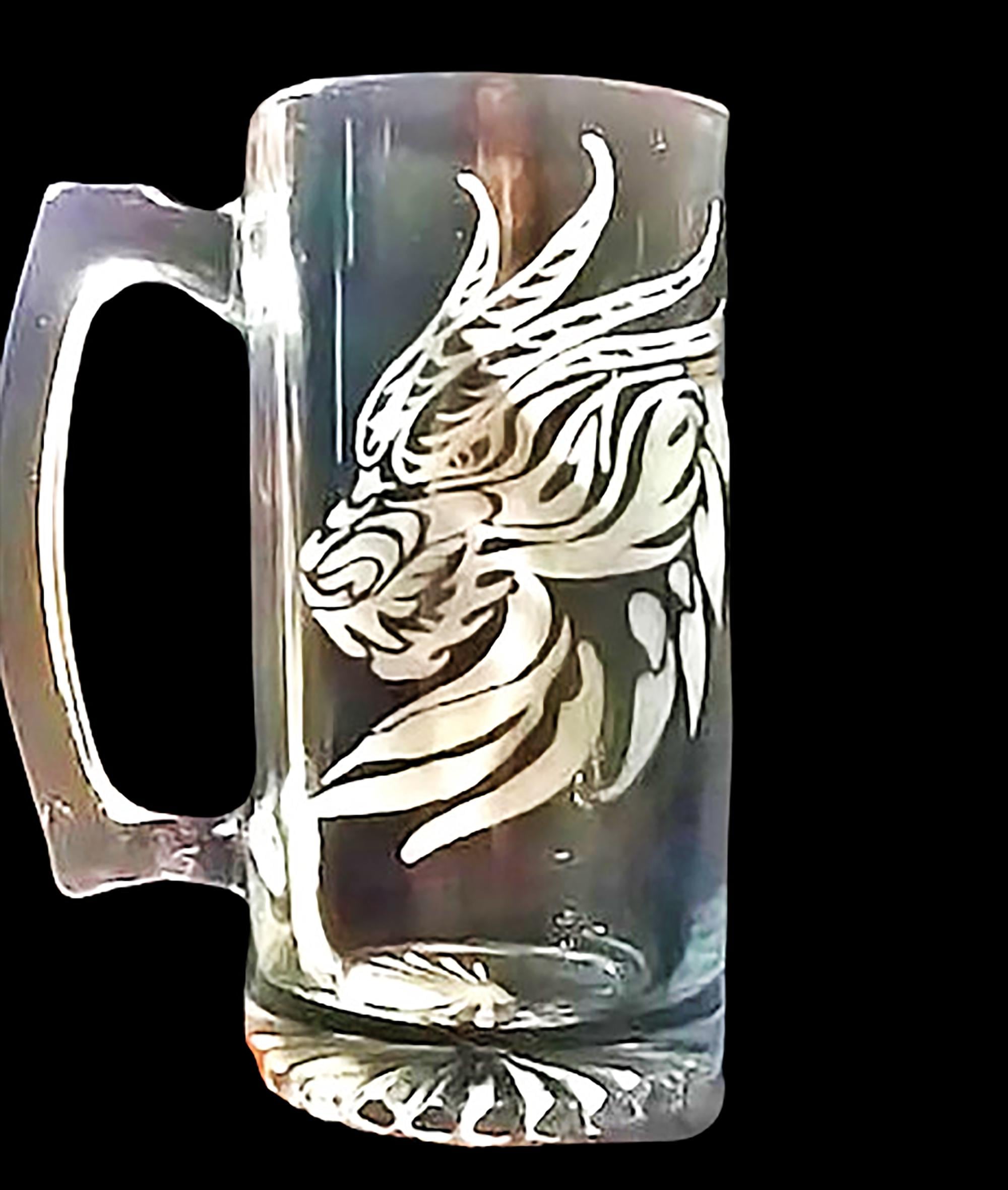 Tribal Dragon, thick, high quality glass mug that are made to last. These mugs are 16 oz, and are perfect for every occasion.