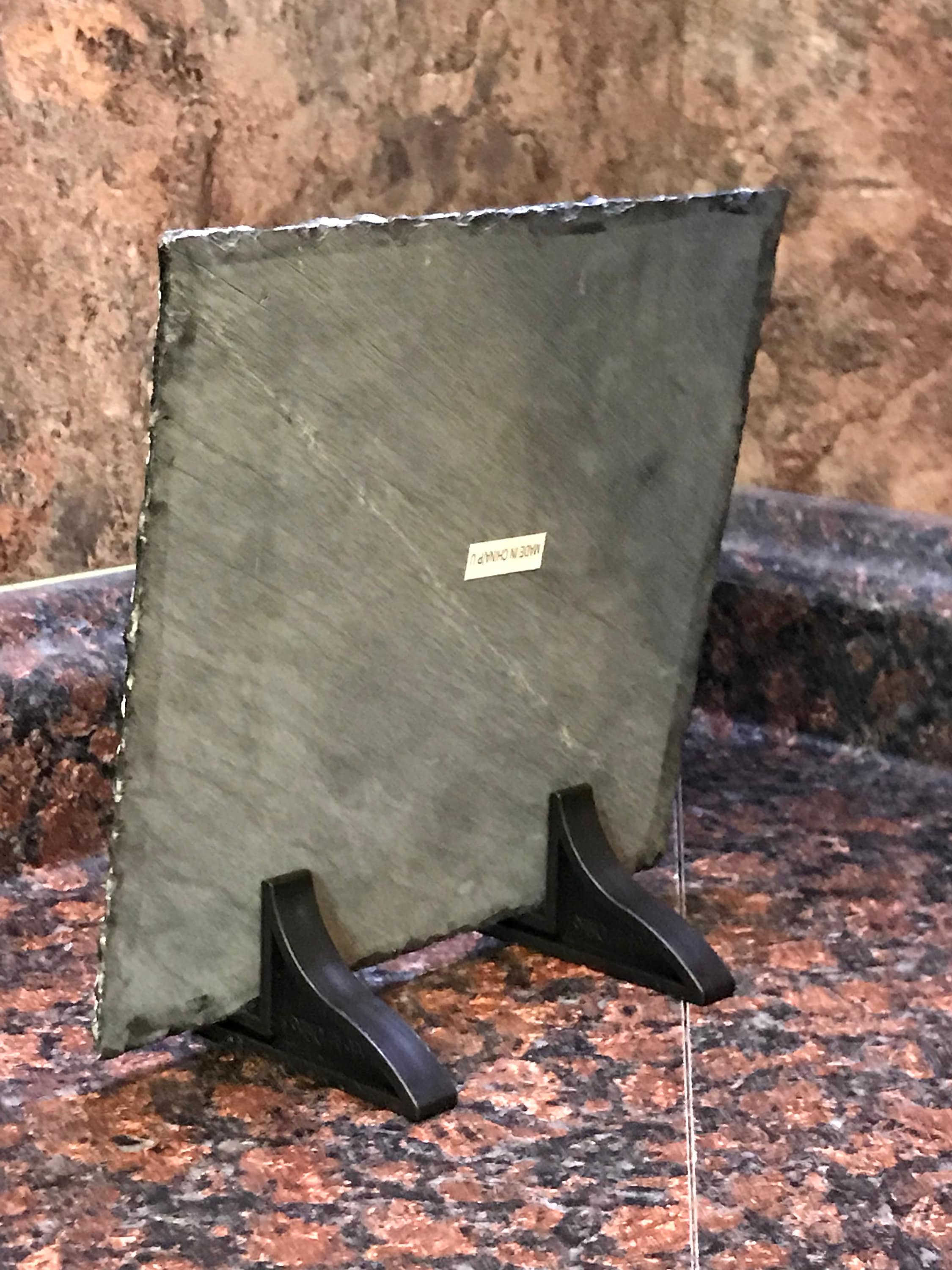 This Photo Slate will come complete with black plastic stand, and fitted box. It measures 7.2" x 7.2" and is perfect for any desk, coffee table, bookcase, or mantle display.