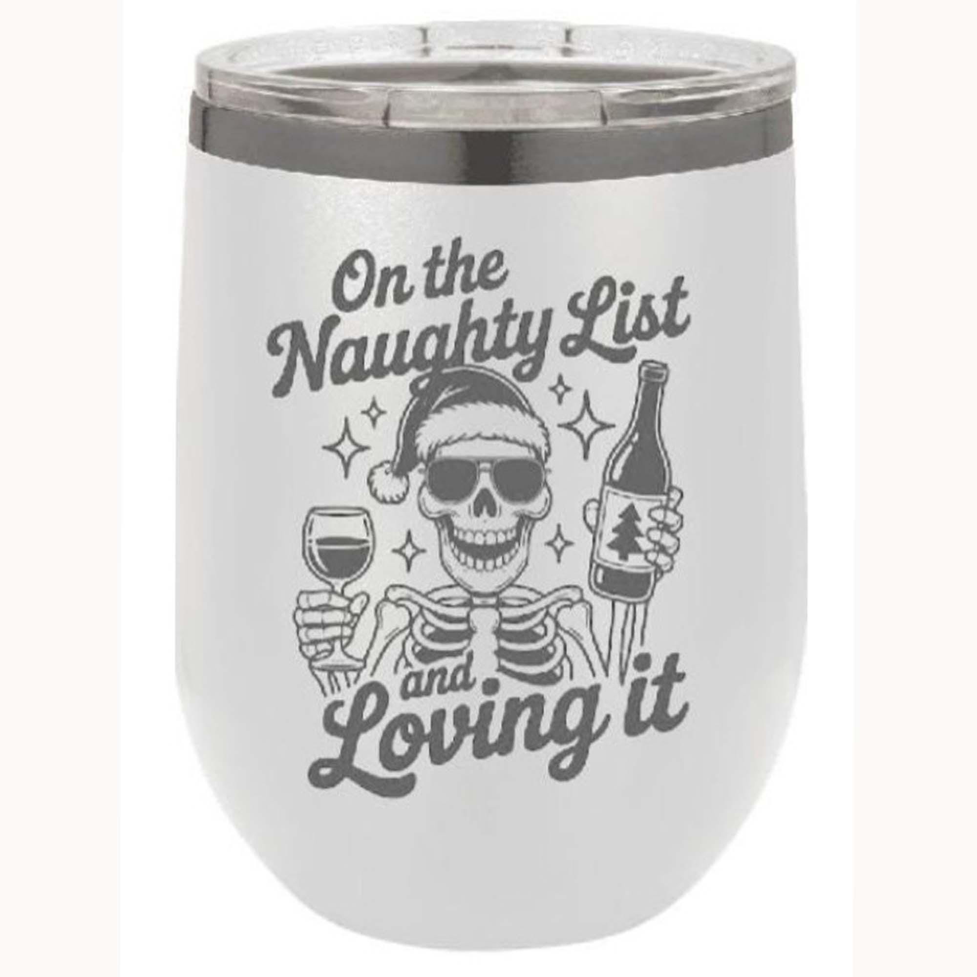 Raise a glass to holiday mischief with this cheeky 12 oz wine tumbler—the perfect companion for adults who embrace their naughty side. Available in bold Red or crisp White, this tumbler keeps your festive drink at the ideal temperature while declaring your unapologetic status on Santa's list. Whether you're hosting a spirited holiday gathering or enjoying a quiet night in, this playful piece adds a wink-and-nudge vibe to your seasonal celebrations. Durable, stylish, and unapologetically fun.