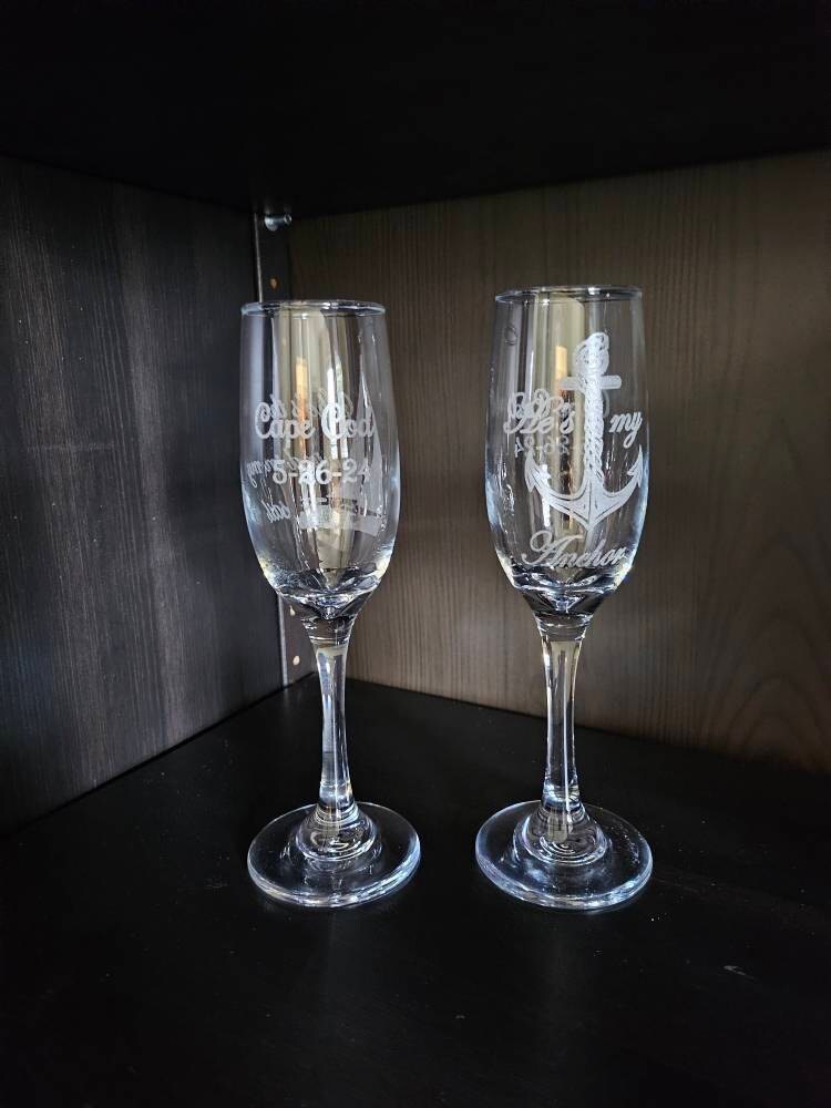 Share a romantic toast to celebrate eternal love with these nautical themed 8 oz. champagne glasses.