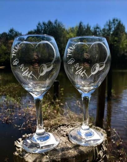Share a romantic toast to celebrate eternal love with our Mrs & Mrs wine glasses. Names and Date can be added at no additional cost.