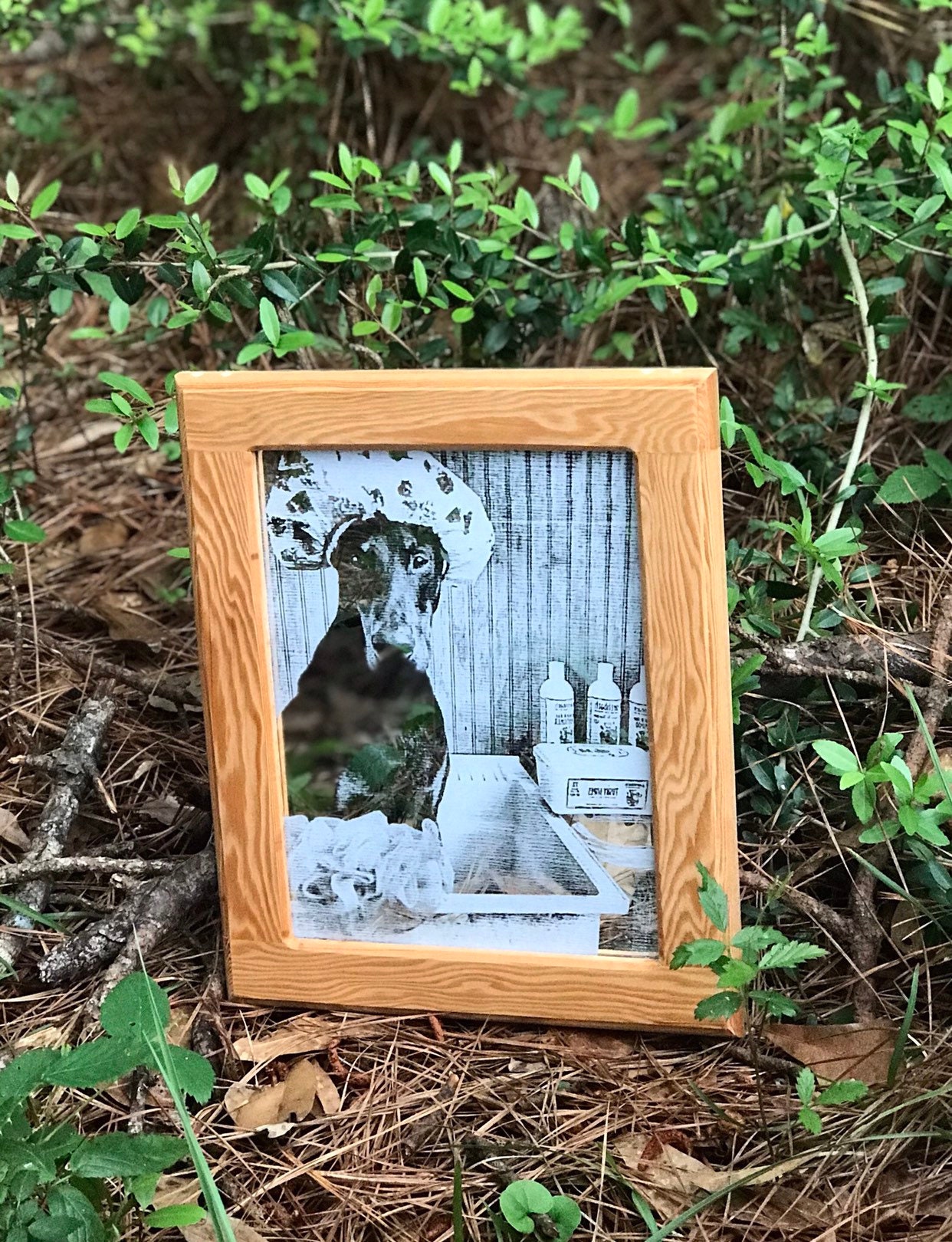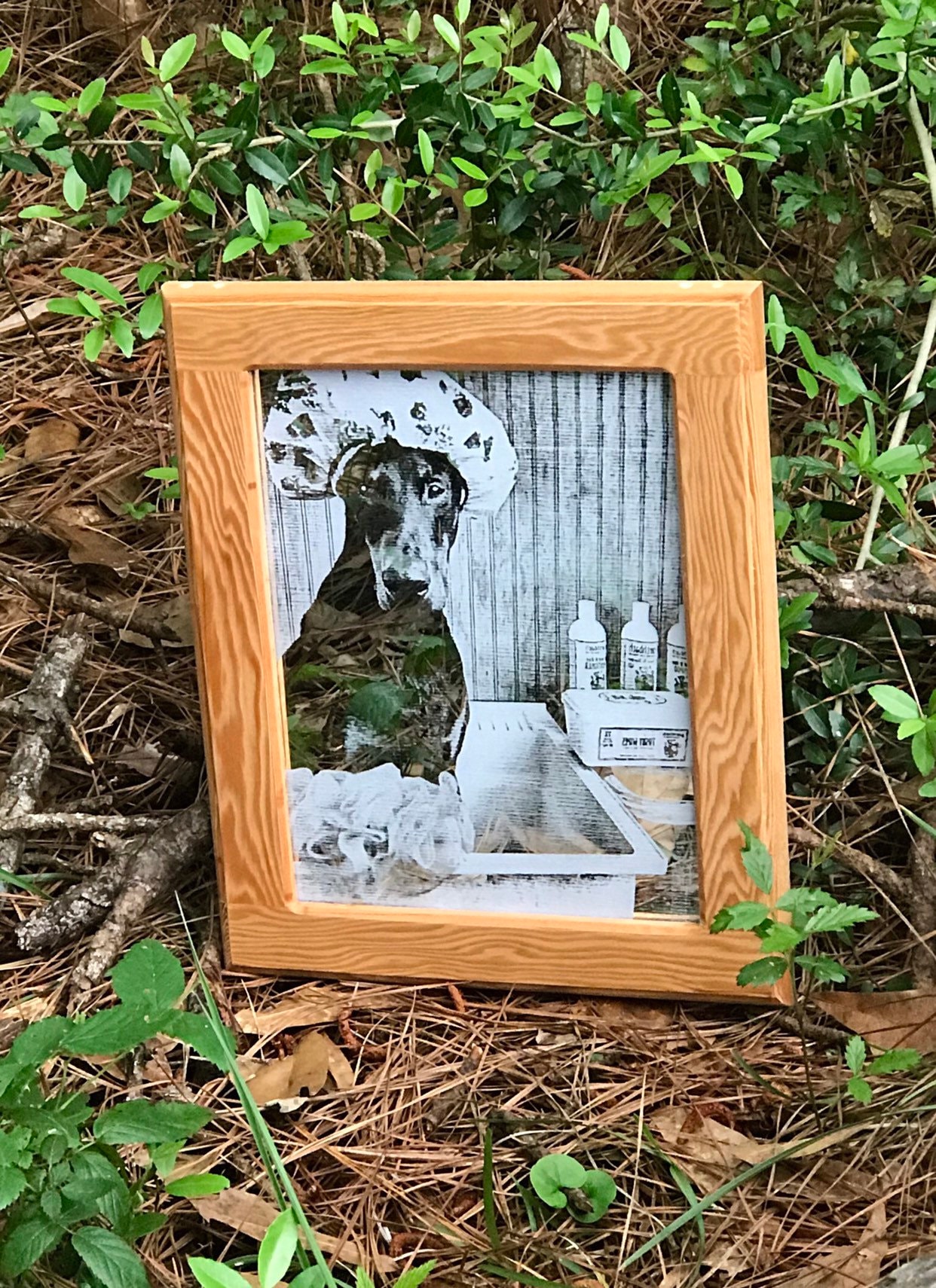 The wood frame is custom made