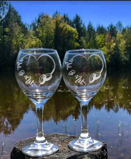 Share a romantic toast to celebrate eternal love with our Mr & Mrs wine glasses. Names and Date can be added at no additional cost.