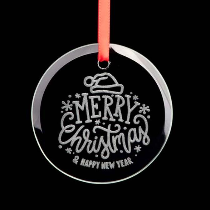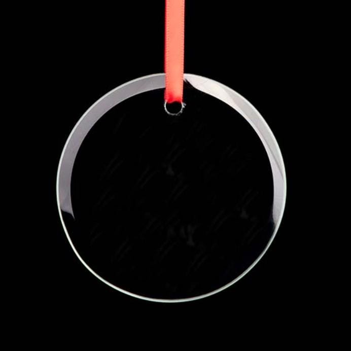 These personalized engraved ultra-polished circle glass ornaments feature a delicate, beveled-cut edge for a simple, yet elegant way to celebrate any occasion.