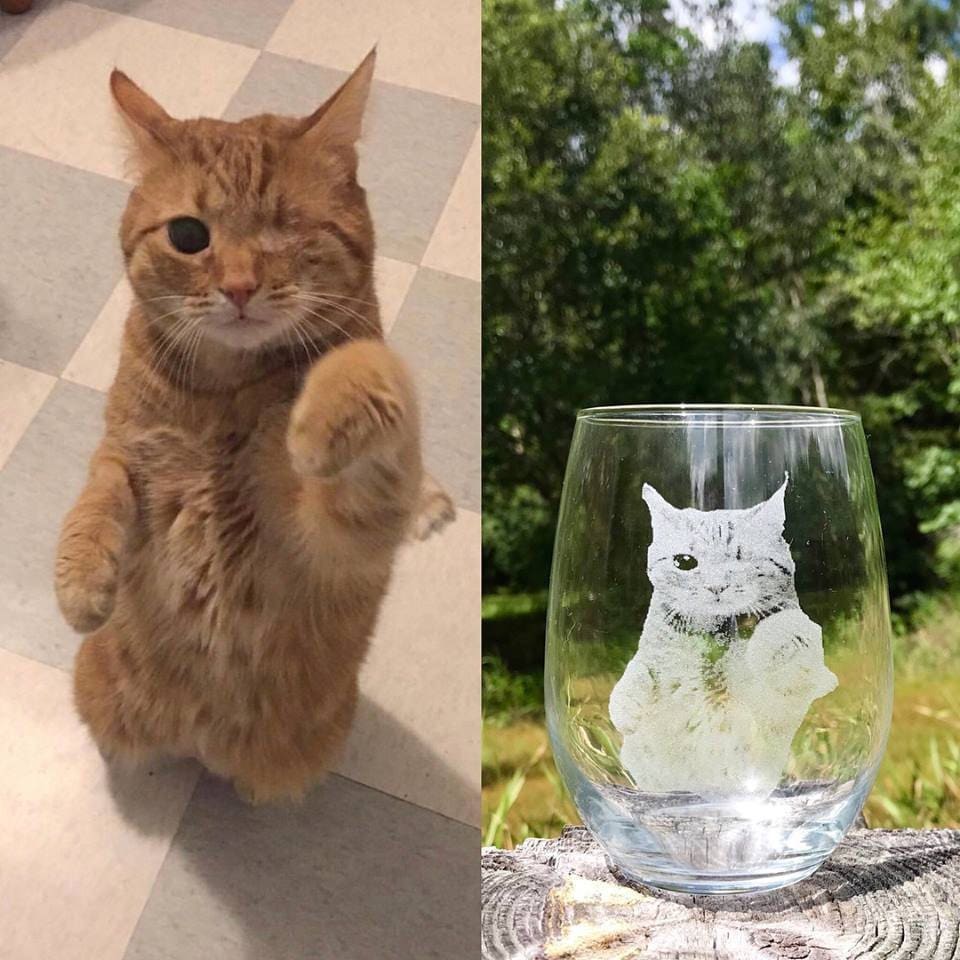 Celebrate your beloved pet—or any cherished photo—with this stunning custom engraved wine glass! Whether it's your dog, cat, or a special memory captured in a photo, we turn it into a timeless piece of glass art.