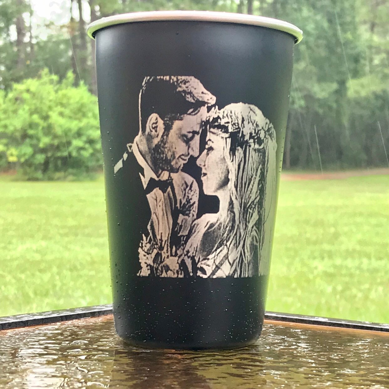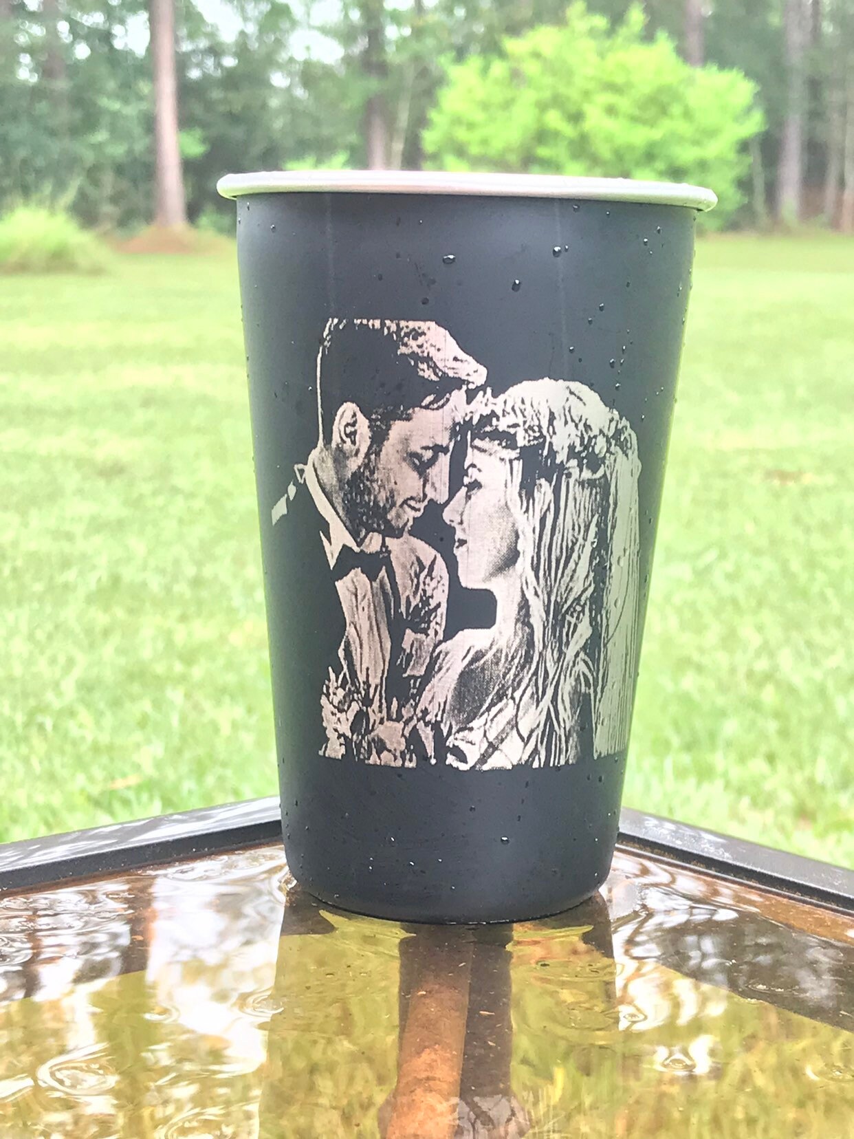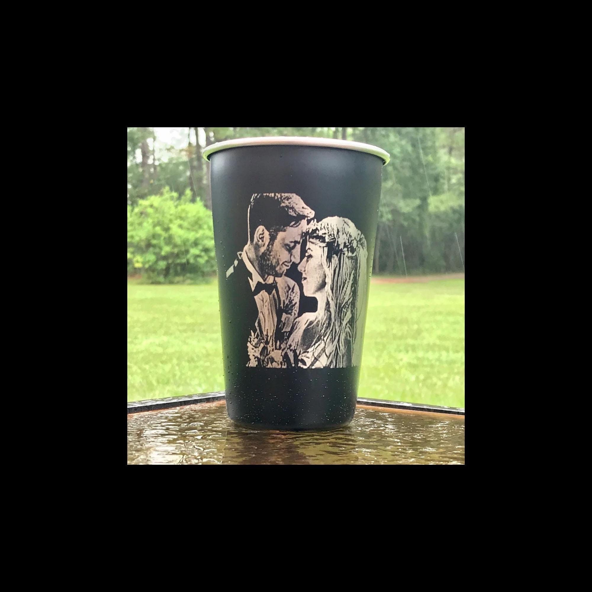Choose your color from the drop down menu. (please keep in mind, the photo will reflect the color of the cup and the engraving will be the stainless steel silver color) Recommendations for photos is black, white, sea-foam. Other colors work best with text and logos. Available in blue, burgundy, matte black, orange, pink, red, sea-foam, white, stainless and camouflage pattern.