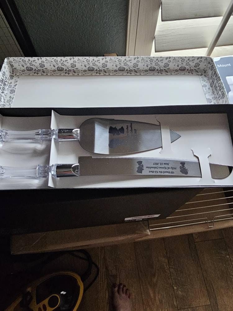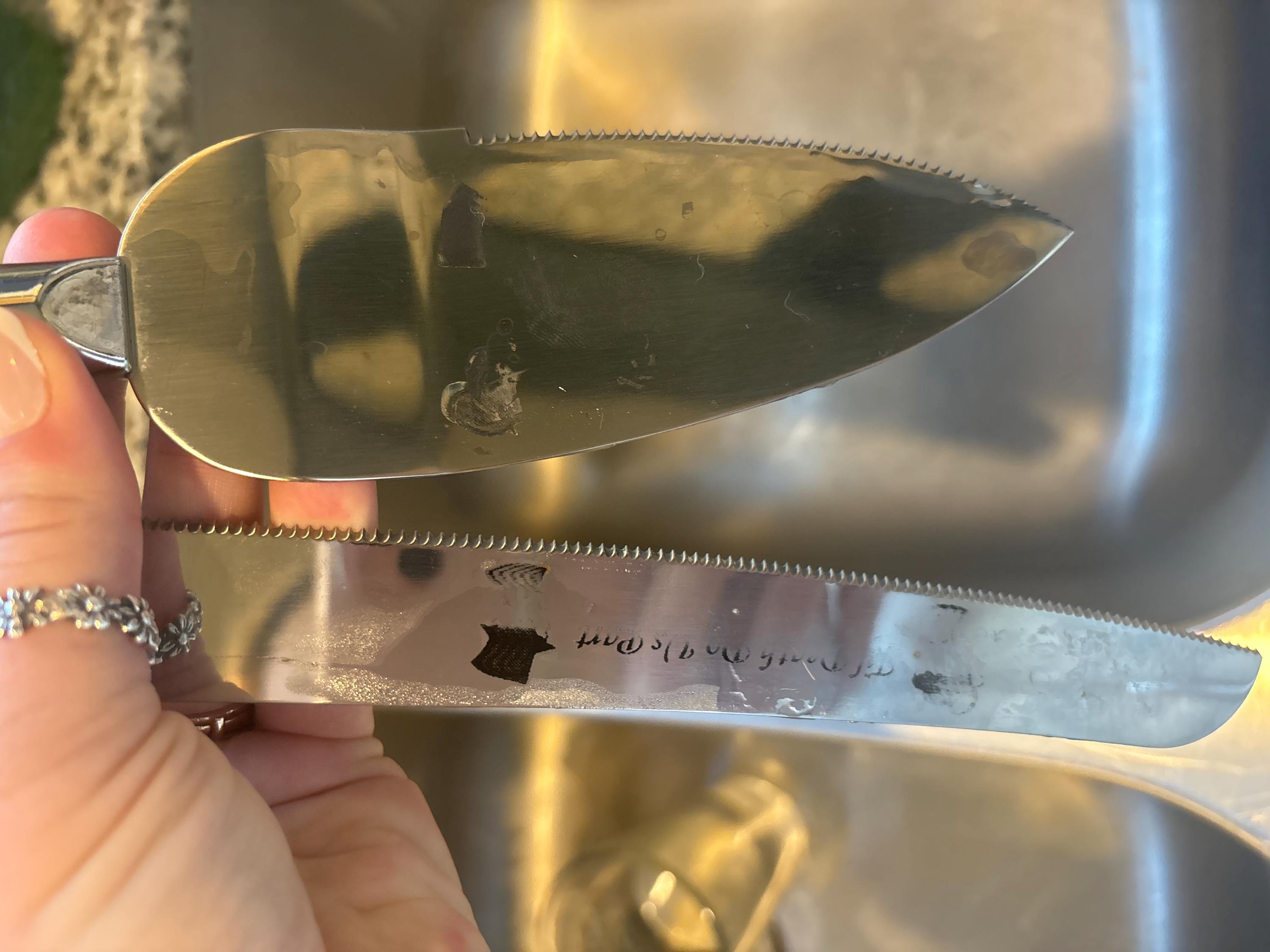 Names and dates can be added to the cake server.