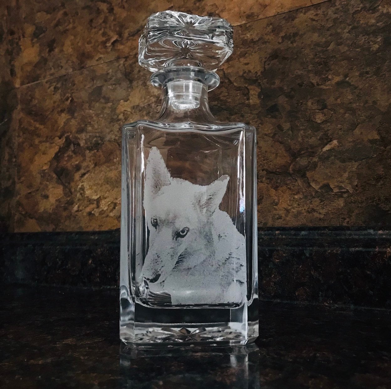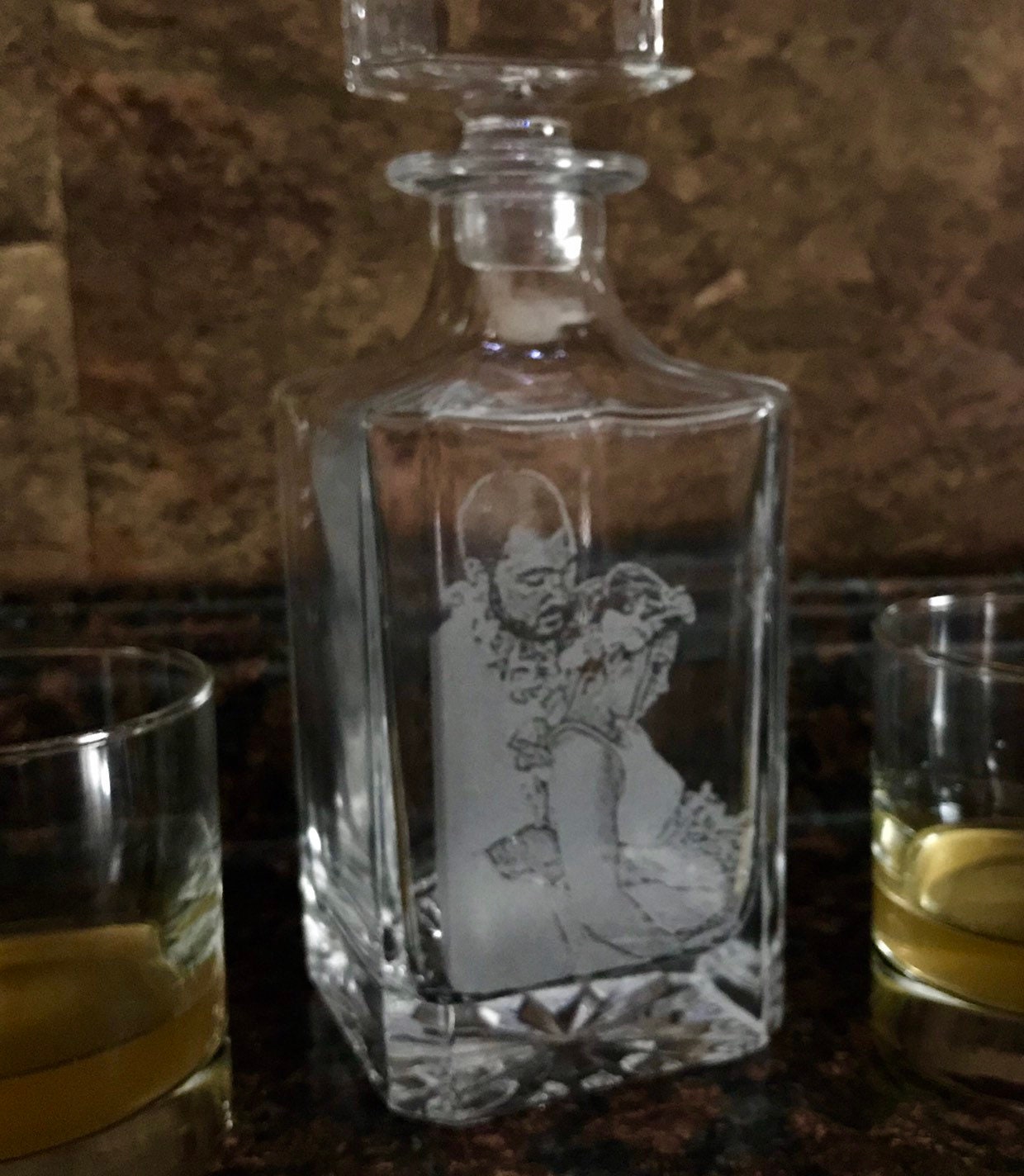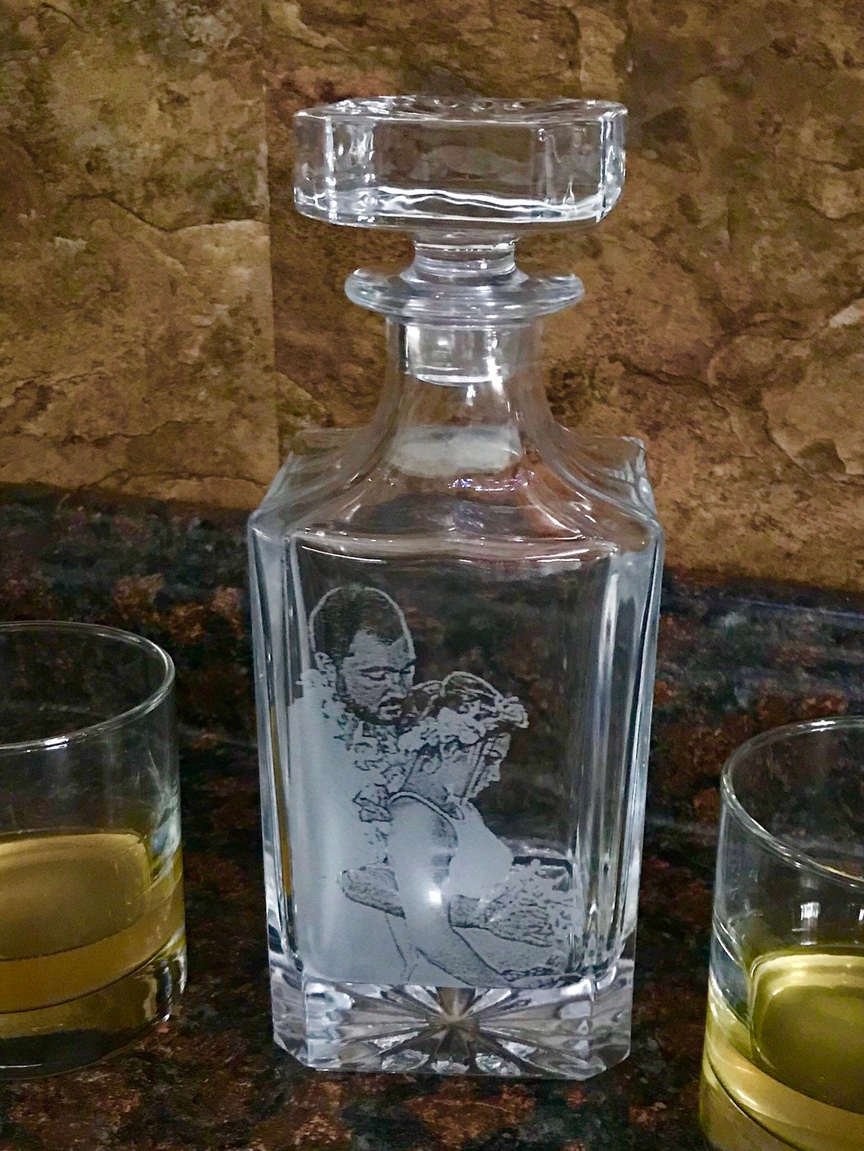 Photo engraved Square 26 oz Crystal Whiskey Decanter with Glass Stopper