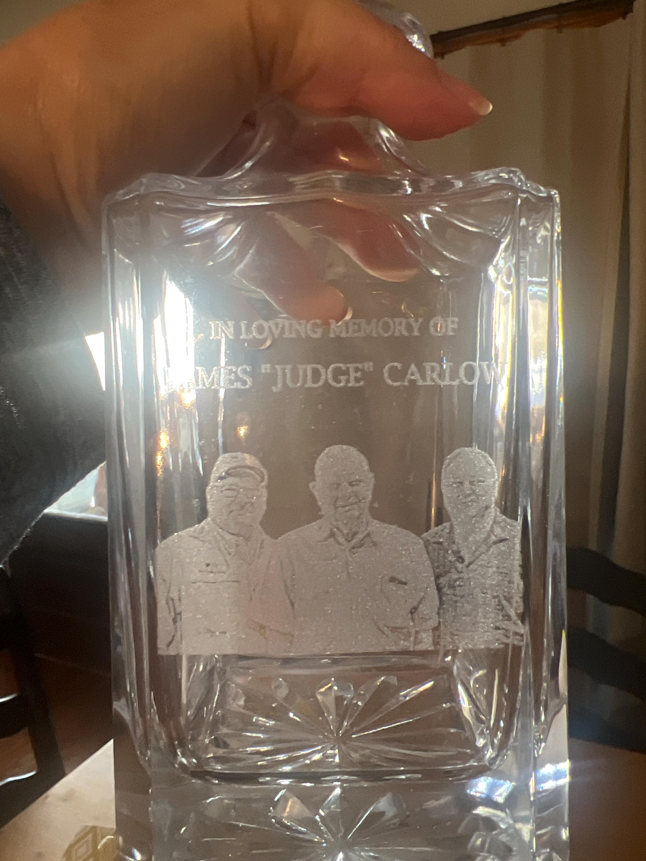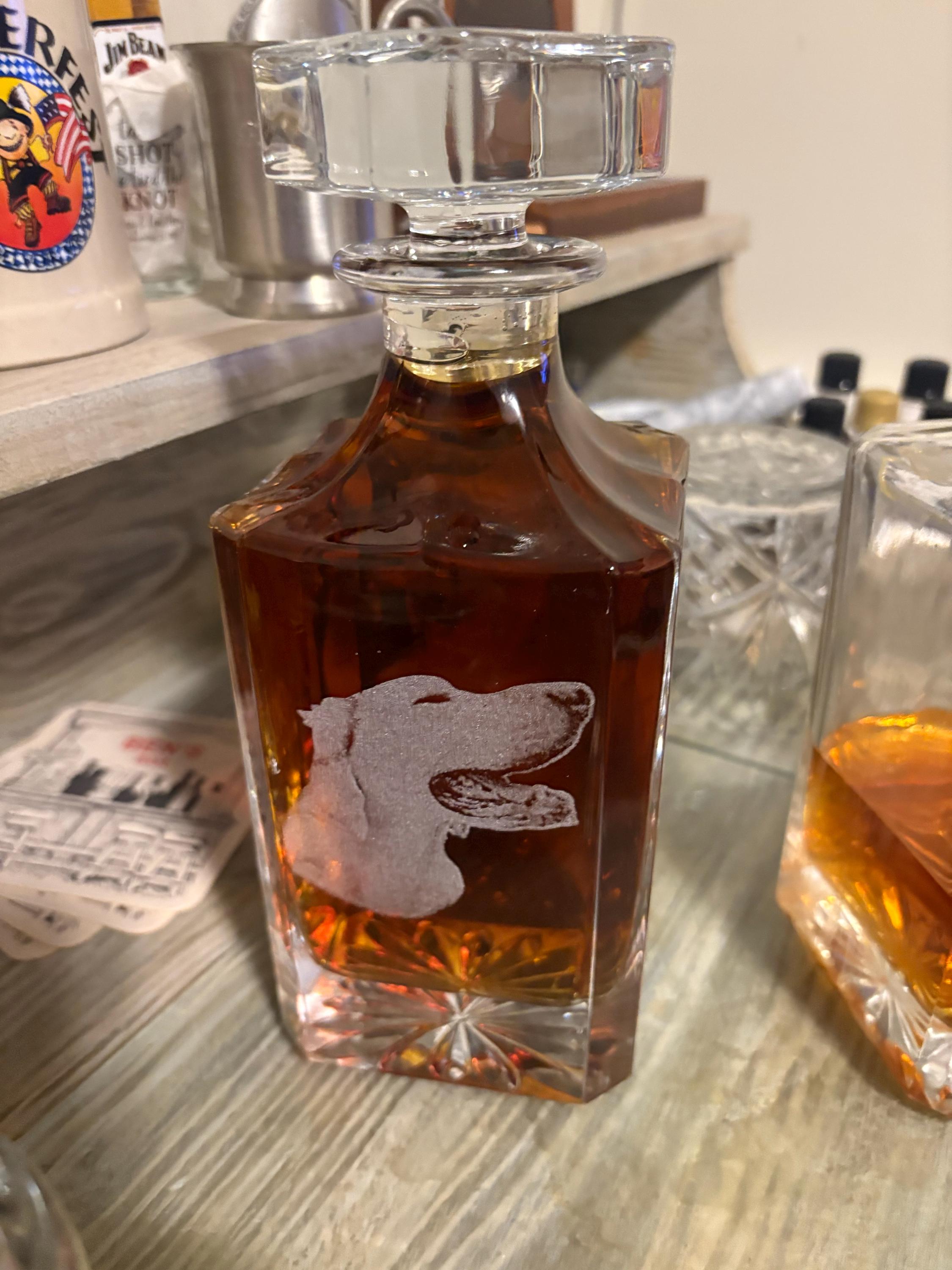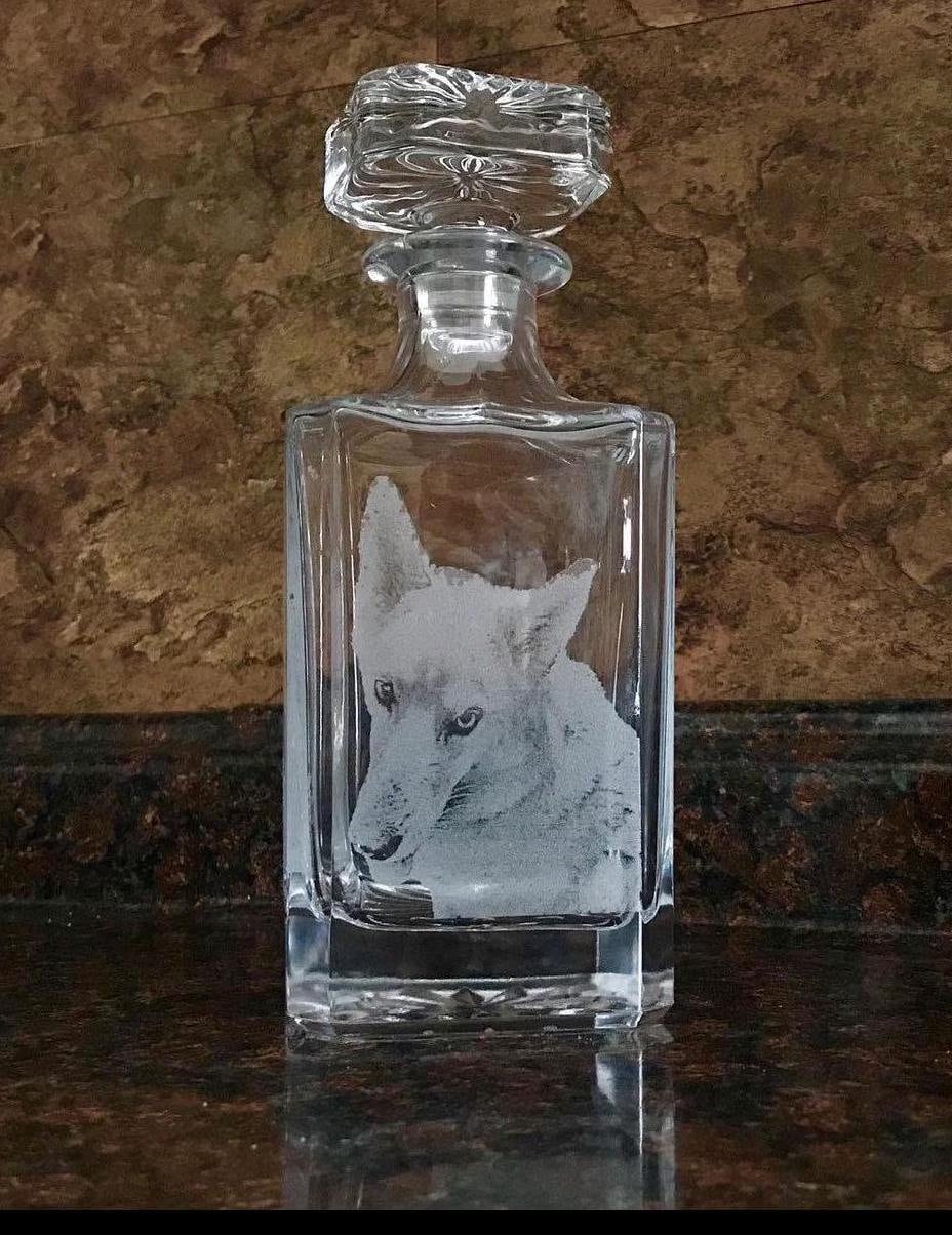Photo engraved Square 26 oz Crystal Whiskey Decanter with Glass Stopper